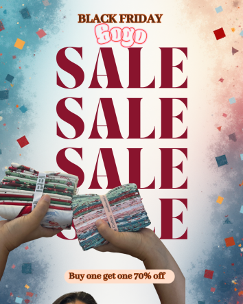 Black Friday SaleBuy 1, Get 1 at 70% Off Our Black Friday special is the perfect opportunity to restock your quilting room or finally pick up those projects you’ve been eyeing. This offer applies to a wide selection of fabrics, notions, patterns and kits. It’s a wonderful time to gather materials for winter sewing projects or to prepare thoughtful handmade gifts for the holidays. Store hours are from 9:30am - 3:00pm. *Sewing machines not included *Items must be of the same kind (2 kits, 2 patterns, etc...) Don't miss the fun!