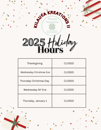 Small Business SaturdaySmall Business Saturday is one of our favorite days of the year because it’s a chance to celebrate the customers who make everything possible. As our way of giving back, the first 24 customers to shop with us on Saturday will receive a special thank-you gift. This is a small token of our appreciation for supporting local, independent businesses like ours. In addition, we will have a door buster special that we are especially excited about—something we know our quilting friends will not want to miss. We will announce that special deal on Friday evening so keep and eye out for that email! Be sure to stop in early to take full advantage of everything we have planned.